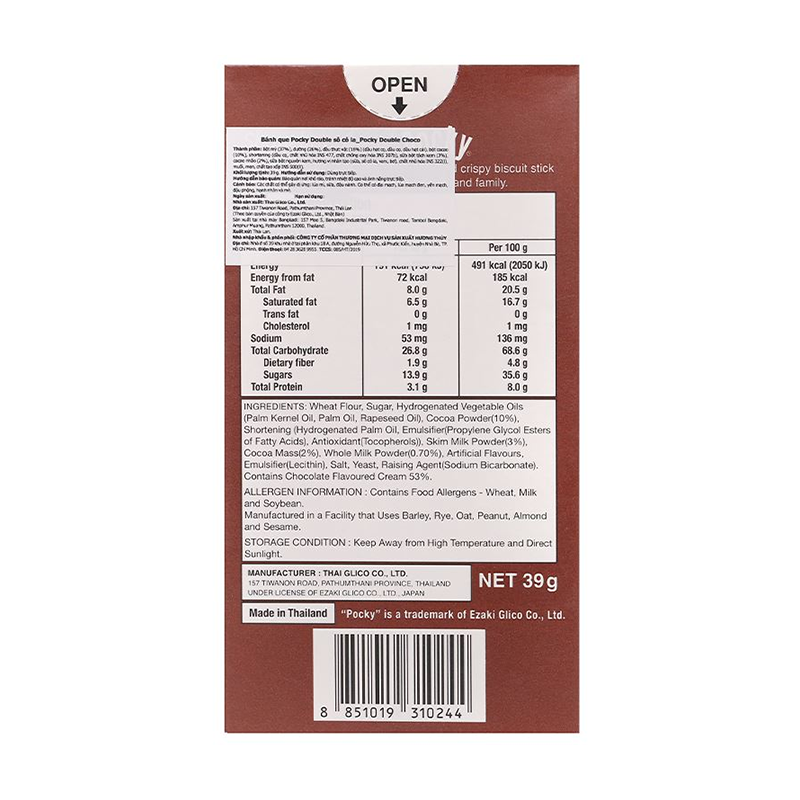 Bánh que Glico Pocky Double Socola là bánh que với ống que giòn ngon với gấp đôi lớp kem socola dành riêng cho team nghiền socola tạo cảm giác thích thú khi ăn , vừa ăn vừa vui lại cảm nhận trọn vẹn sự hòa quyện giữa vỏ bánh giòn rụm với nhân kem đến từ thương hiệu bánh que Glico