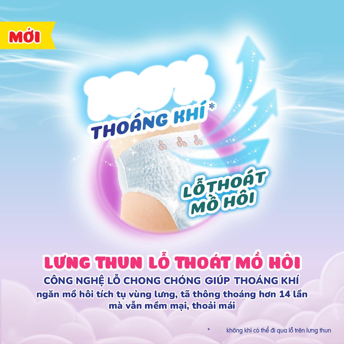 CÔNG NGHỆ LỖ CHONG CHÓNG THOÁNG KHÍ ngăn mồ hôi tích tụ vùng lưng, tã thông thoáng hơn 14 lần mà vẫn mềm mại, thoải mái