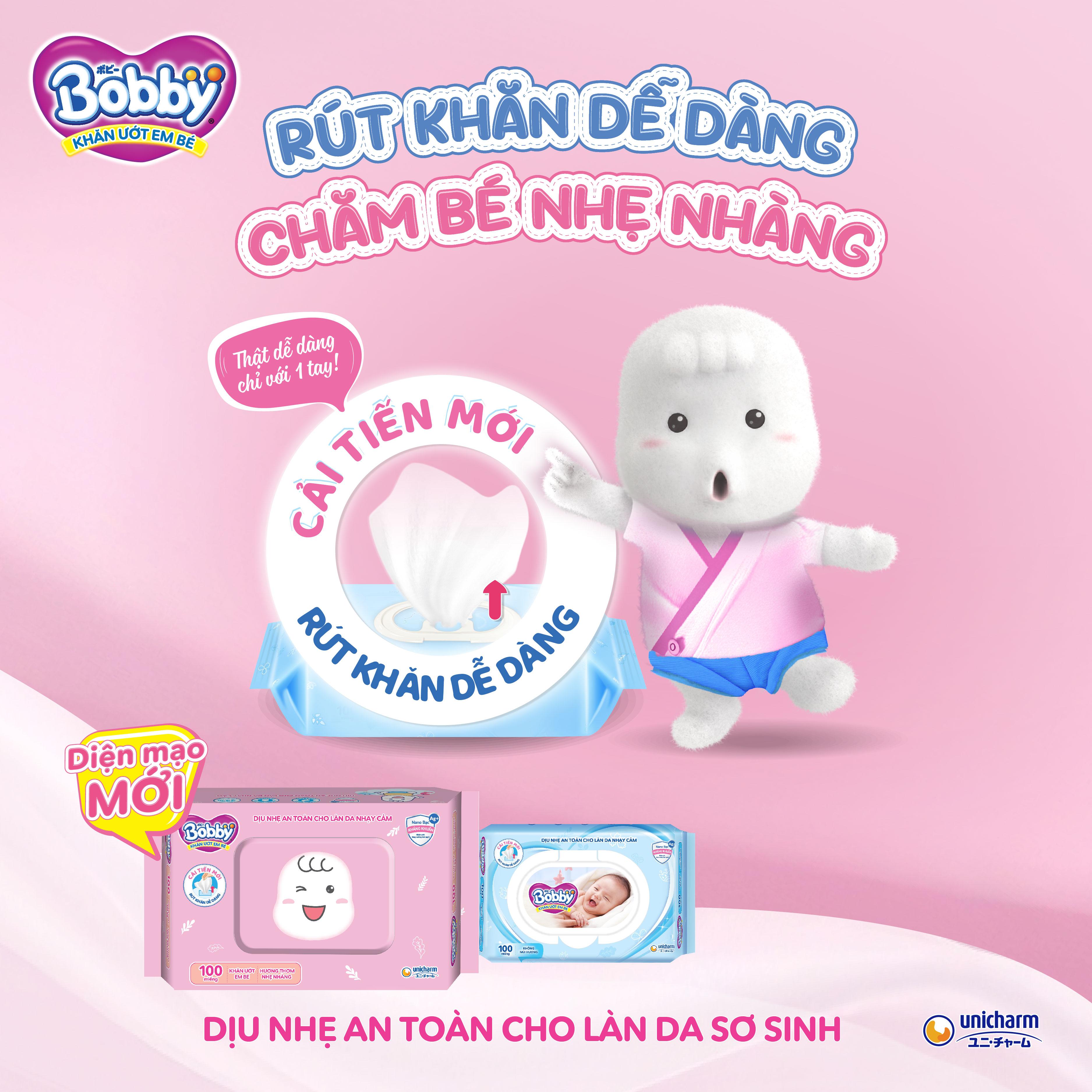 Khăn ướt Bobby là sản phẩm chăm sóc trẻ em của Tập đoàn Unicharm - Nhật Bản. Hơn 40 năm qua, sản phẩm Chăm sóc trẻ em của Unicharm đồng hành cùng hàng triệu em bé Nhật Bản từ những ngày đầu tiên chào đời, và tự hào được lựa chọn là nhà sản xuất tã lót em bé tin dùng bởi các bà mẹ Nhật. Nay, sản phẩm khăn ướt trẻ em được phát triển ứng dụng công nghệ của nhà dẫn đầu, Bobby cam kết đem đến sự thoải mái, an toàn và nâng niu tối đa cho bé yêu - như vòng tay âu yếm của mẹ.