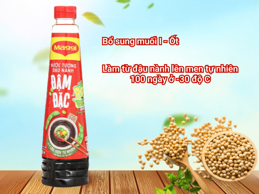 • Nước tương Maggi không chứa độc tố 3 MCPD, tinh chất đậu nành đậm đặc, bổ sung I-ốt, đảm bảo dinh dưỡng trong từng giọt nước tương.