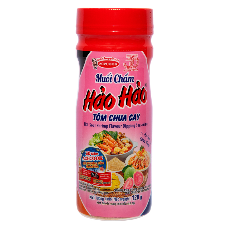 Muối chấm Hảo Hảo tôm chua cay có thể dùng chấm trái cây, làm gia vị nêm nếm giúp món ăn thơm và đậm vị chua cay độc đáo. Muối Hảo Hảo là loại muối "quốc dân" được sản xuất theo công nghệ Nhật Bản đảm bảo an toàn cho sức khỏe và rất được ưa chuộng hiện nay.