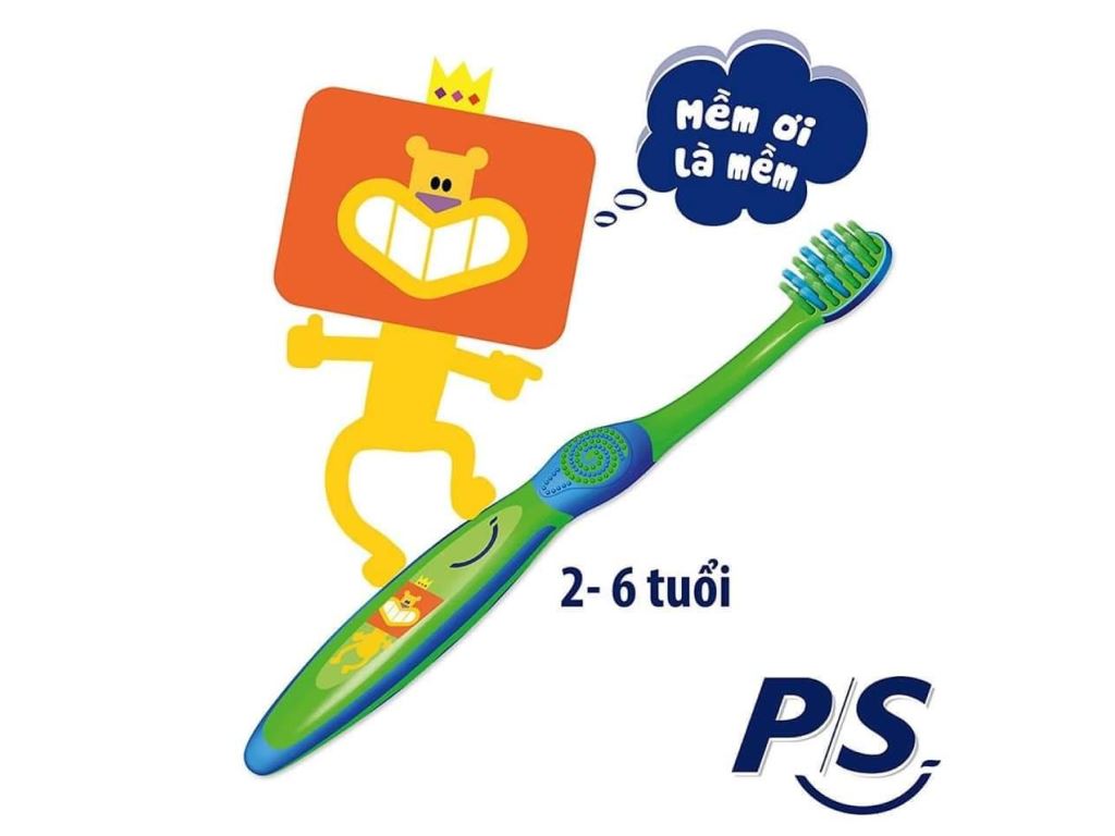 Là bàn chải cho bé đến từ thương hiệu P/S, bàn chải cho bé 2 - 6 tuổi P/S Kids lông siêu mềm với lông bàn chải siêu mềm giúp chăm sóc nướu và làm sạch răng một cách hiệu quả. Tay cầm được thiết kế bo tròn giúp các bé dễ cầm nắm.