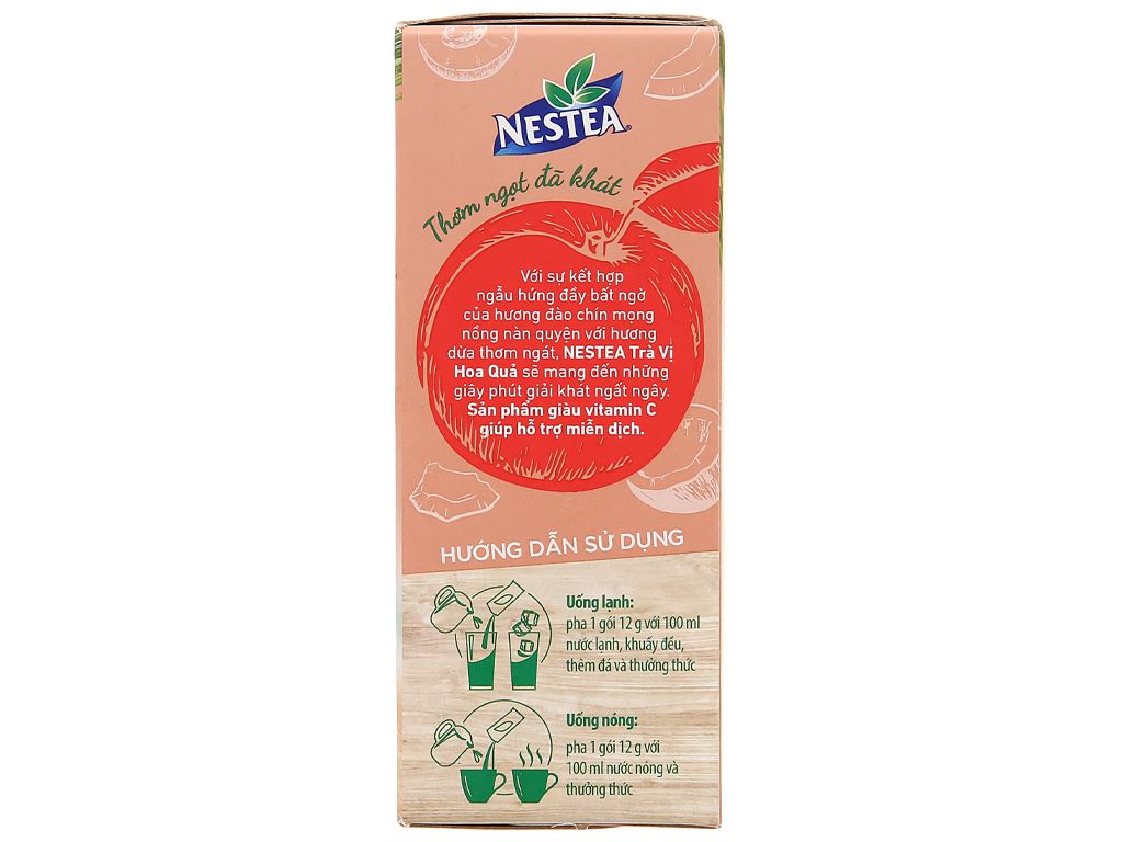 Trà Vị Hoa Quả Nestea với sự kết hợp ngẫu hứng đầy bất ngờ của hương đào chín mọng nồng nàn quyện với hương dừa thơm ngát. NESTEA Trà Vị Hoa Qủa sẽ mang đến cho bạn những giây phút giải khát ngất ngây. Sản phẩm giàu Vitamin C giúp hỗ trợ miễn dịch.