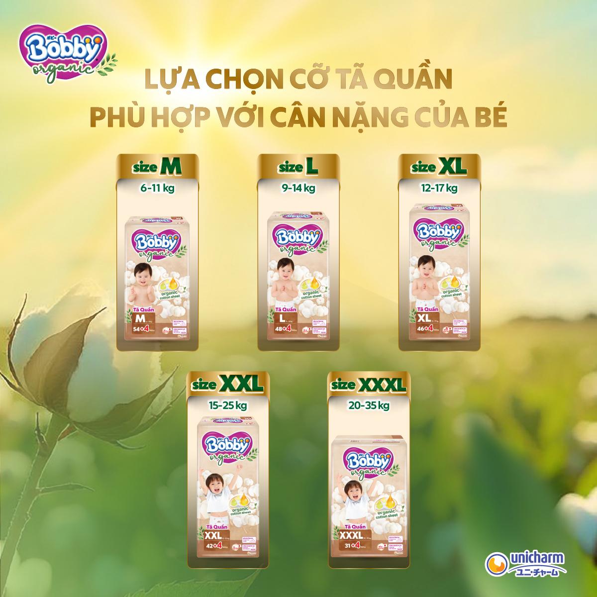 [MỚI RA MẮT] [TẶNG MIẾNG] Tã quần cao cấp Bobby Organic chăm sóc dịu nhẹ từ thiên nhiên M72+8/L60+8/XL56+8/XXL54+6